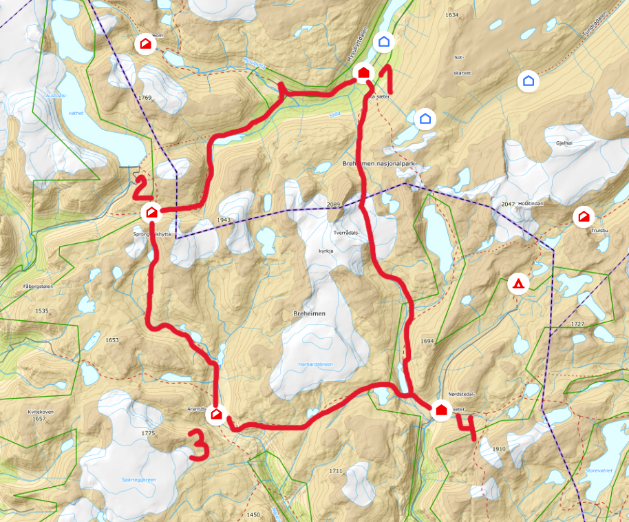 Breheimen er eit av dei mest storslåtte og urørte høgfjellsområda i Sør-Noreg. Her møter vi eit mektig landskap forma av is, vatn og tid – med vide dalar, grøne setervollar, blankskura fjell og store brear som ruvar i horisonten. På denne fellesturen går vi ein klassisk rundtur med start og mål på Sota Sæter, gjennom noko av det finaste Breheimen har å by på. Turen er krevjande, men svært givande, og passar for deltakarar med god fjellerfaring og lyst på lange dagar med sekk i variert høgfjellsterreng.