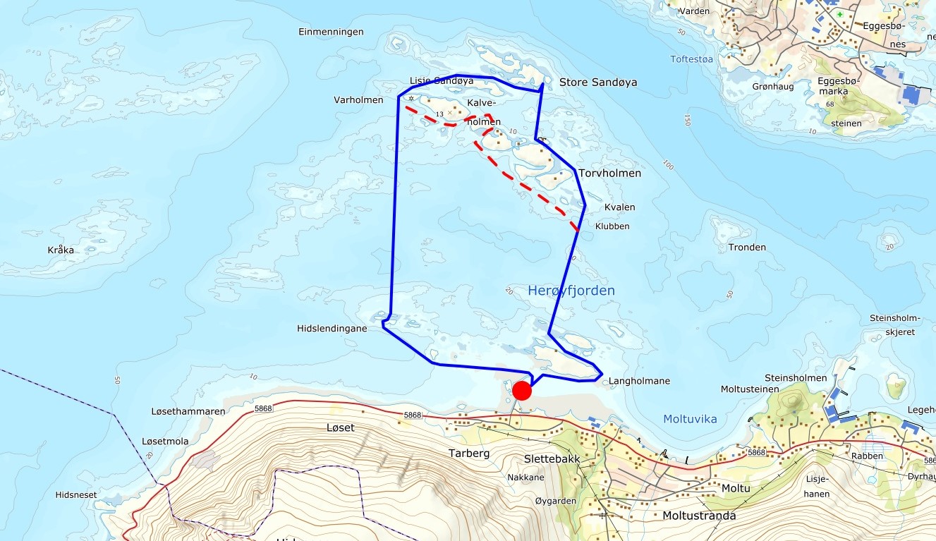 Turen går i frå Tarberg på Moltustranda via holmar og skjær til Flåvær.