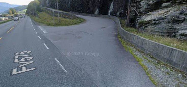 Frå Gjermundshamn køyrer vi i retning Norheimsund. Etter å ha passert kyrkja i Vikøy køyrer vi knappe 2 km og tek av til venstre (180 graders sving) opp Tveitevegen som ser slik ut: