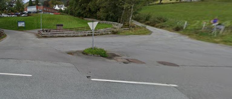 Ved hovudinnkøyrsla til sjukehusområdet tek du vegen til høgre på dette bildet: