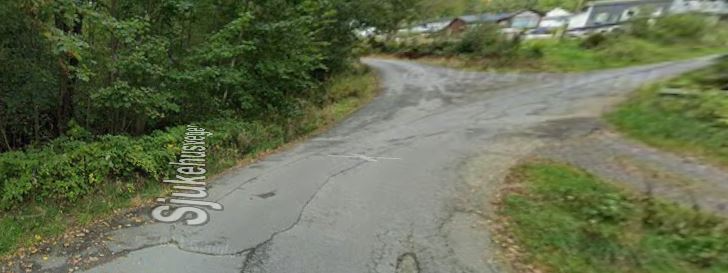 Etter 200 meter kjem du til eit nytt vegdele der du tek til venstre på den vegen du ser på dette bildet:
